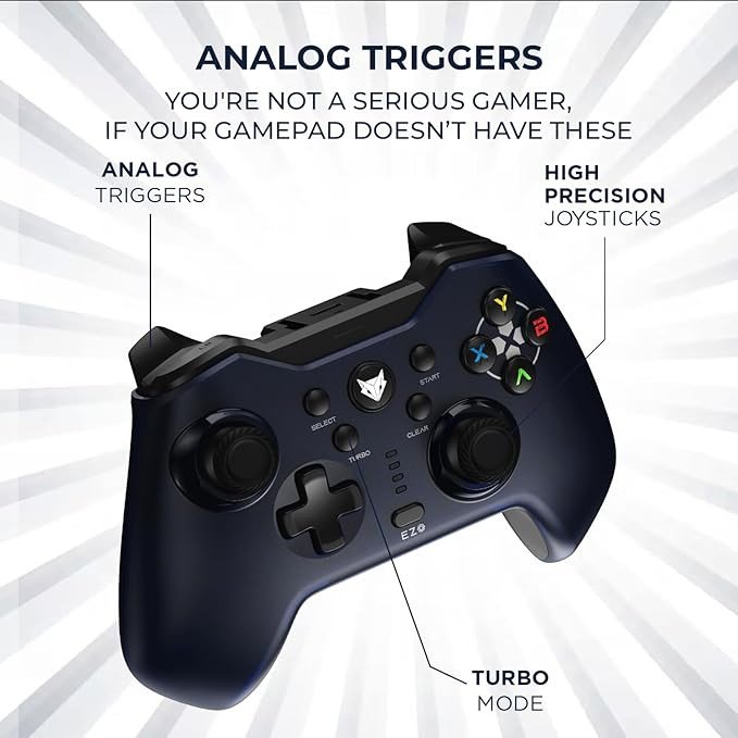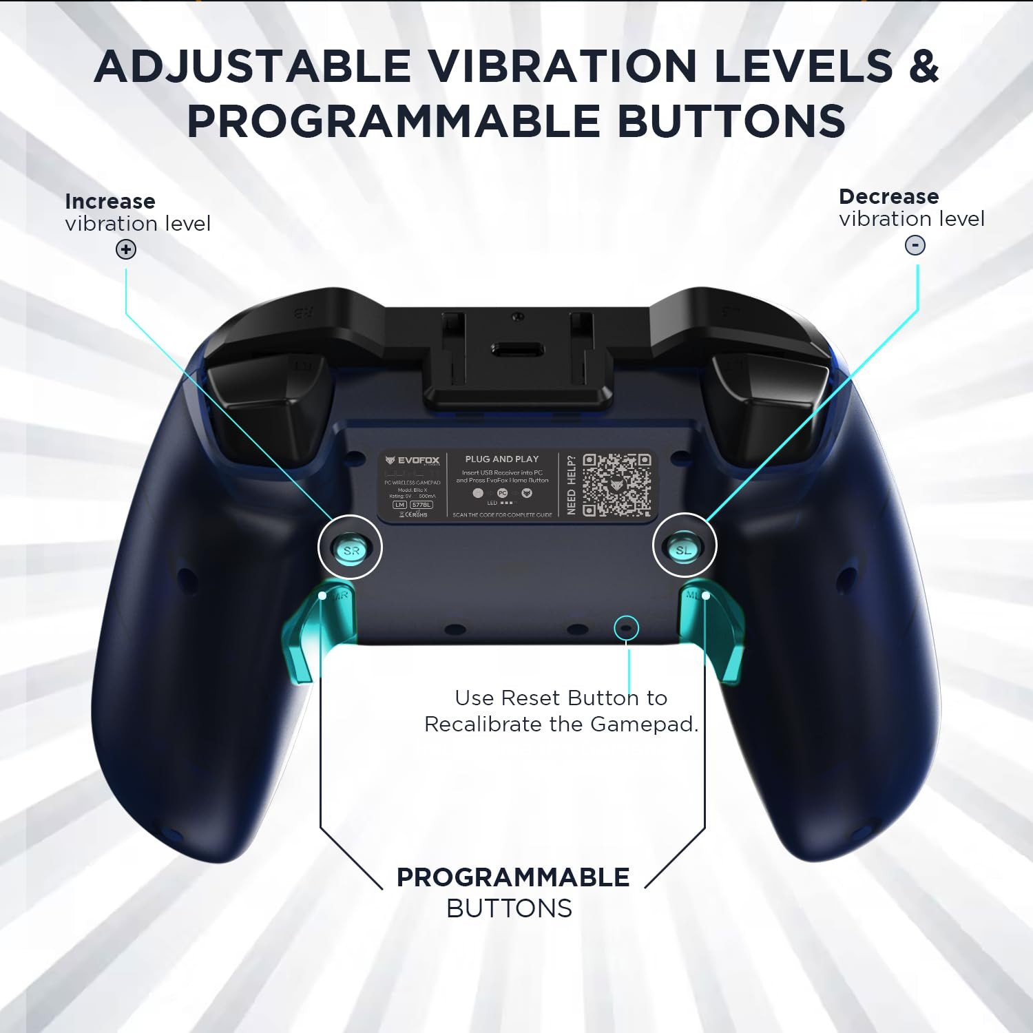 Gamepad with Ergonomic design and Long battery life: Enjoy long gaming sessions with a shape that fits naturally in your hands and Long battery life of up to 8 hrs.