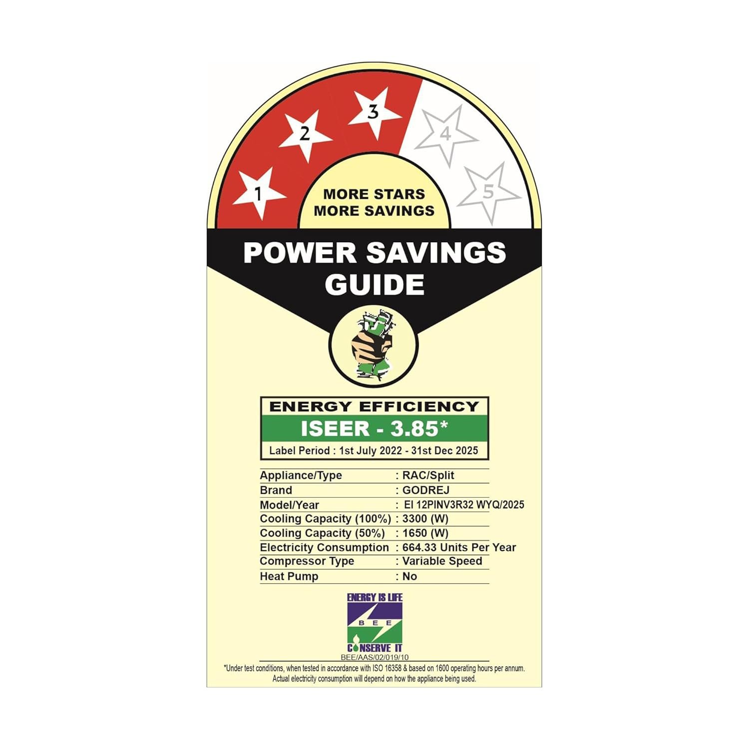 Energy rating: 3 star, Annual energy consumption: 905.41, ISEER value: 4.1