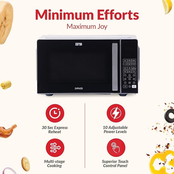 IFB 24L Solo Microwave Oven (24PM2S, Multi Stage Cooking with 69 Indian & Continental Auto Cook Menus, Child-lock Protection, Deodorize function, Delay Start & Power Save, black)