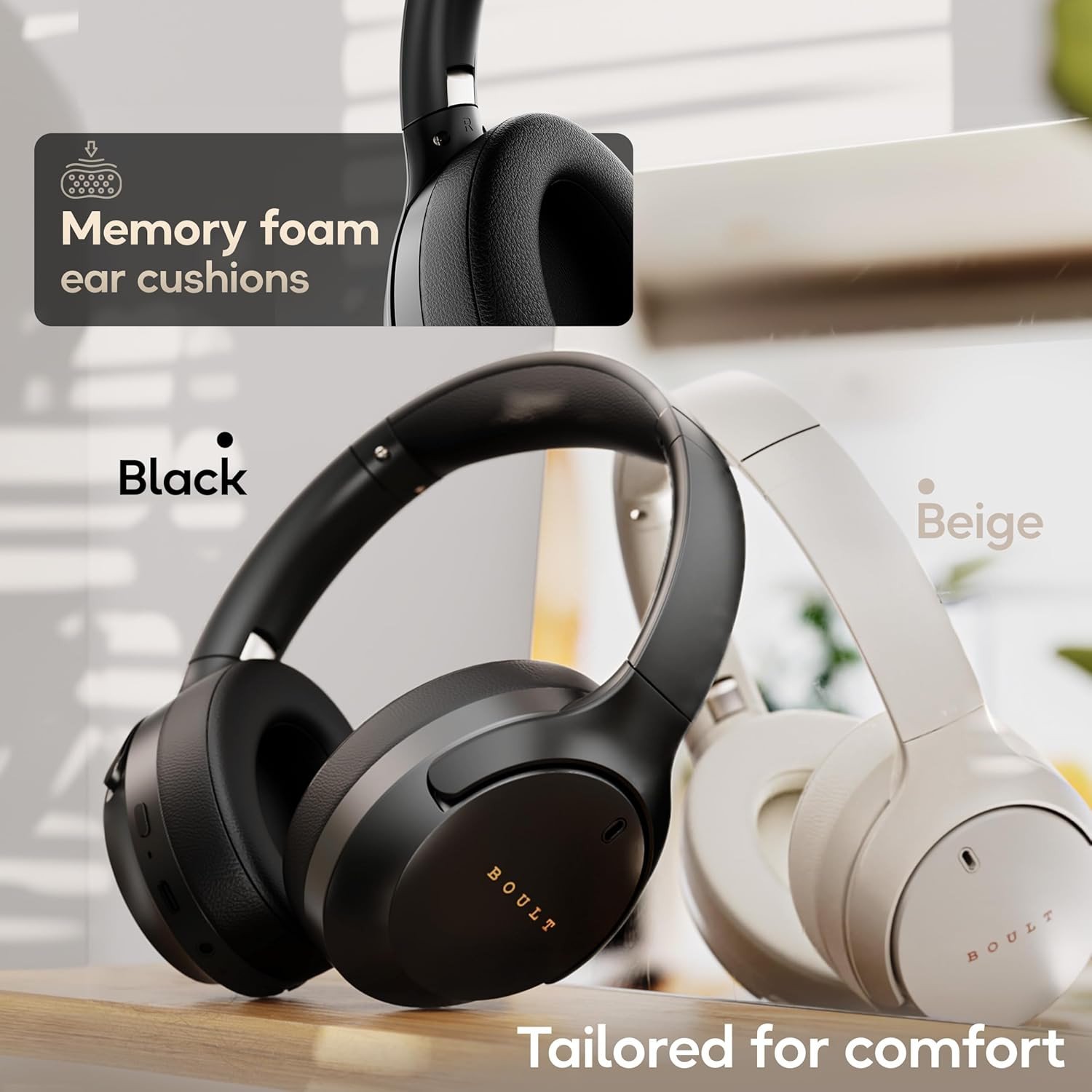 Q Over Ear Bluetooth Headphones with 70H Playtime, 40mm Bass Drivers, Zen™ ENC Mic, Type-C Fast Charging, 4 EQ Modes, Bluetooth 5.4, AUX Option, Easy Control, IPX5 headphones wireless with mic (Black)