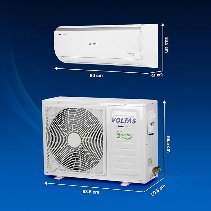 Item Dimensions & Weight : IDU - 80 x 26.5 x21 cm (w x h x d), Outdoor: 83.5 x 55.5 x 29.5 cm (w x h x d), IDU: 8.3 Kg (net weight), Outdoor : 25.1 Kg (net weight)