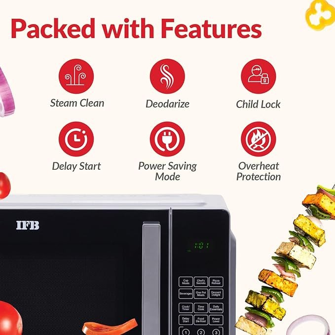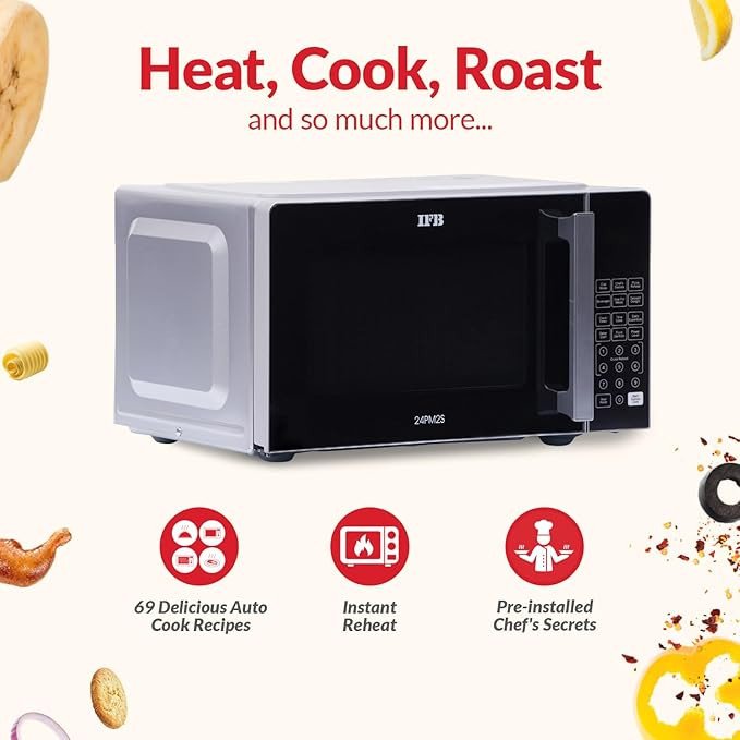 IFB 24L Solo Microwave Oven (24PM2S, Multi Stage Cooking with 69 Indian & Continental Auto Cook Menus, Child-lock Protection, Deodorize function, Delay Start & Power Save, black)