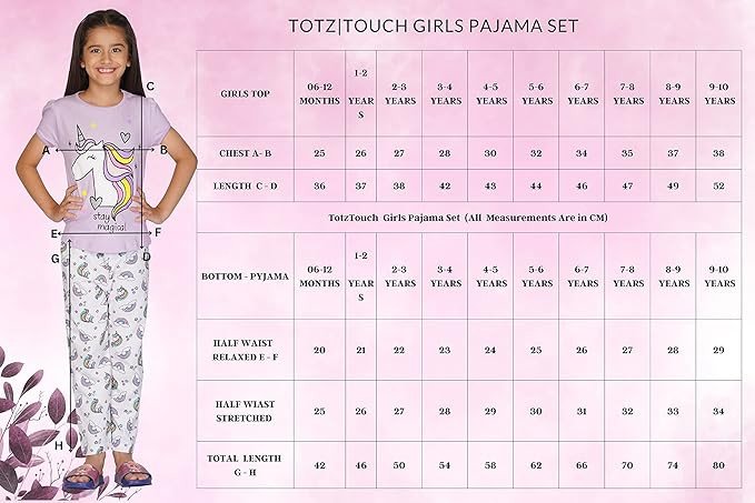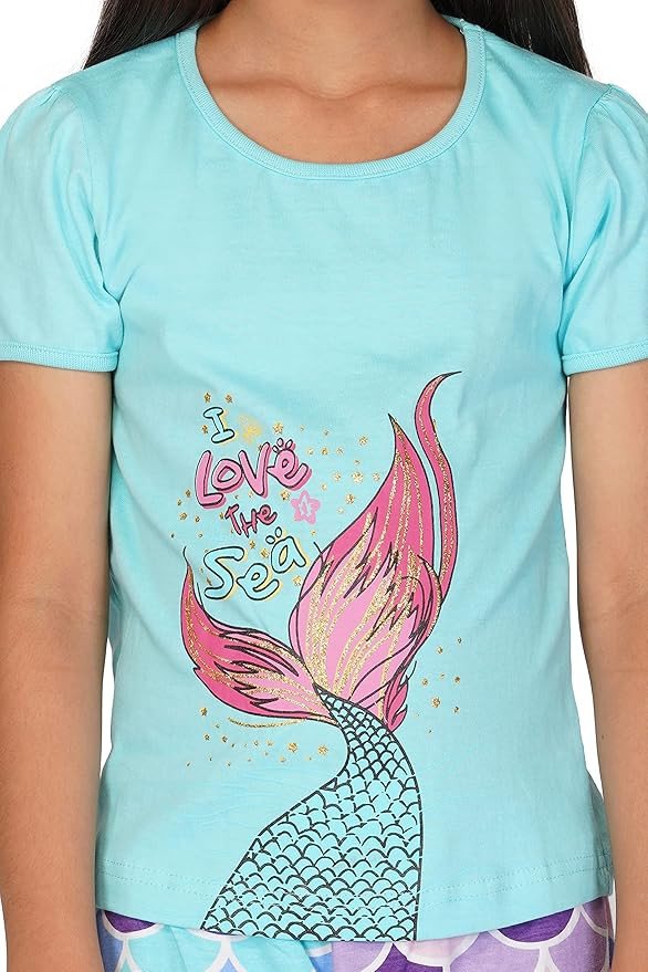 Eye-catching design: These little girl night dress set t shirt and pant features cute and colorful prints like magical unicorn , mermaid , foxy face on chest and pant that add to its overall appeal, making it an excellent choice for parents looking for sleepwear that is both functional and stylish.Your little one will love wearing it during all day play time or sleep time